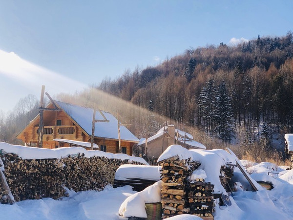 木屋.积雪.玉米串.这副搭配真的很 东北 了