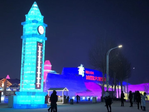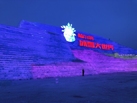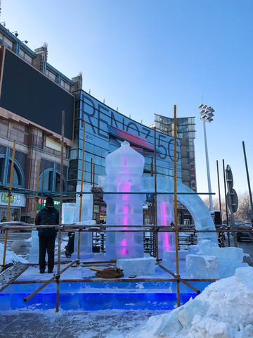 冰雪大世界官方开园时间是12月23号下午,无奈23号我们就要坐飞机走了,想着看能不能碰碰运气有没有可能在开开园之前能进去溜达溜达,打了滴滴来到这里,感觉这里温度比别的地方低好几度呢,可能都是冰雕的缘故的。