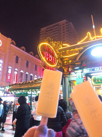 在 哈尔滨 的中央大街上怎么能不吃一根马迭尔冰棍呢,还别说大冬天里吃上这么一根冰棍还真爽!奶味很浓,而且真的省了很多在南方吃冰棍融得太快弄脏衣服的尴尬,这室外就是天然的大冰箱啊!吃着冰棍也是牙齿健不健康的大考验了