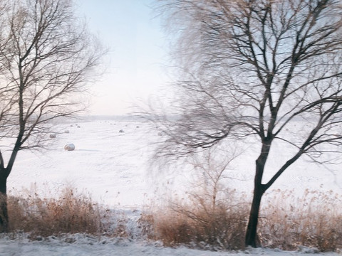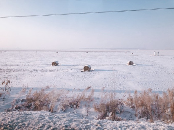 走国道路过的这些被白雪覆盖的小村庄,我拿起手机拍个不停,看到矮房子就咬醒坐在隔壁的小吴说你快看好美好美?