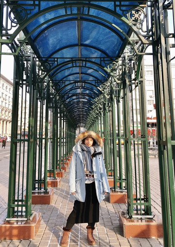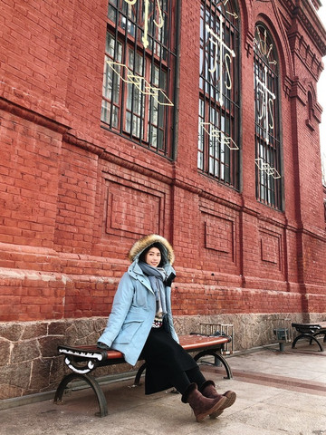全副武装就露出一张脸,其实除了拍照我都是用围巾把脸捂得严严实实就露出眼睛,在这种寒冷的天气里,只要把自己捂严实了就不会觉得冷了,在街上溜达冷了可以随便进去一间店铺取取暖,然后再出来溜达。