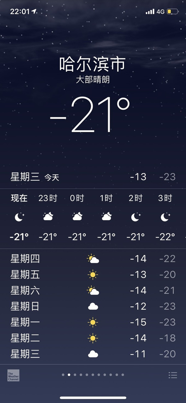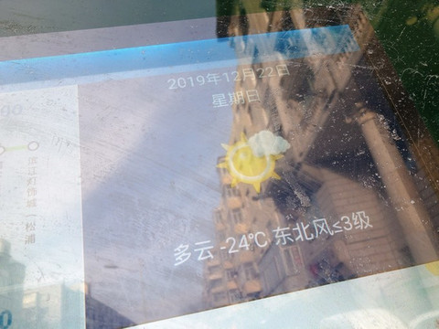 等车的牌子上显示 哈尔滨 冬至这一天零下24度,多云??