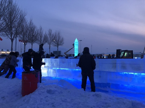 来到蒙门口发现工人们还在紧锣密鼓的为明天的开园作最后的准备,景区管理的也很好我们根本找不到空子有可能钻得进去?在外面看一眼已经很满足了,隔着售票大厅的玻璃还可以看到里面的大冰雕们。于是不可免俗的还是跟冰雪大世界拍个照,到此一游吧~