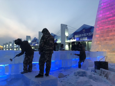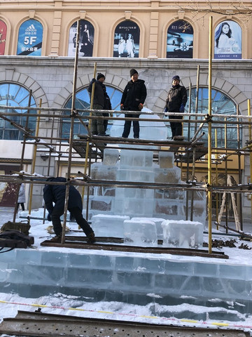 我们去的时候是12月中,中央大街上的冰雕还在造,有点小遗憾没有看到街上完好的冰灯