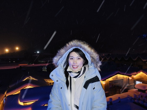 打开闪光灯就可以拍到面前有雪花飘落,?室外拍照真的太考验人了,我不争气的买了触屏不灵敏的手套,每次拍照都得脱下一只手套把手露在外面按手机,我的摄影师小吴都差点冻哭了,这里要点名表扬?