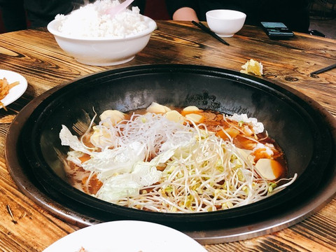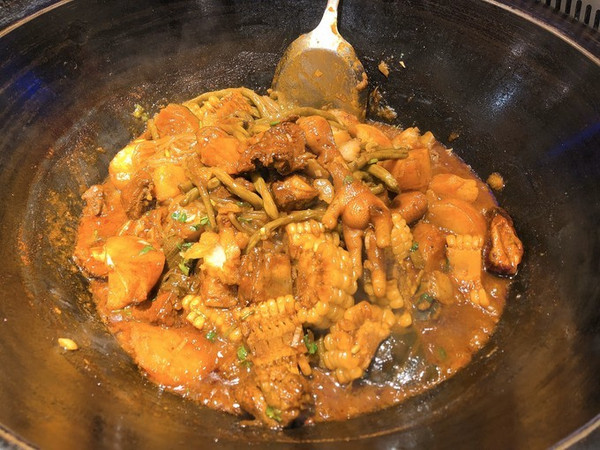 随便路过一家铁锅炖的店发现里面好多人本地人在吃觉得肯定错不了,直接进入取了号等着,发现有团购,你能相信吗,这么大一铁锅东西上才80块?然后还送一盆花卷,我们两个人吃下来发现完全吃不完,这锅里有玉米南瓜土豆鸡脚排骨豆角,而且汁特别浓厚超级好吃,最后我们吃得撑的半死才吃了铁锅的三分之一。超级满足??这铁锅炖爱了爱了,后来我整趟旅程下来,发现我吃到最好吃的东西居然是这巨便宜的铁锅炖。