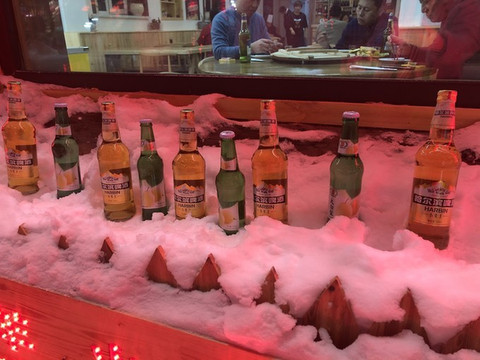 室外天然大冰箱,要和冰啤酒就把啤酒往外面的雪里一扎,一会就有解渴的冰啤酒和啦