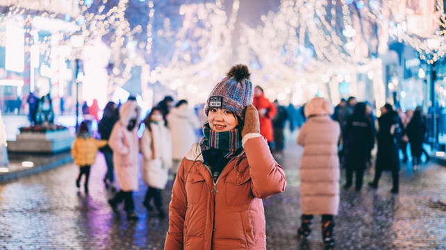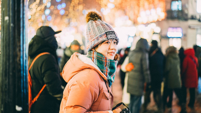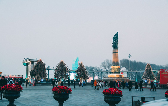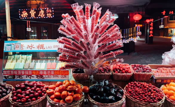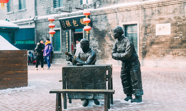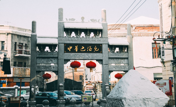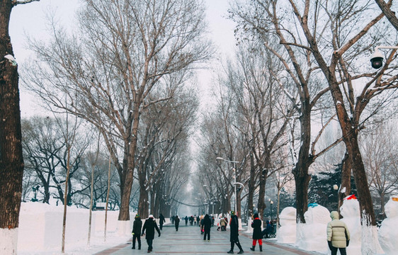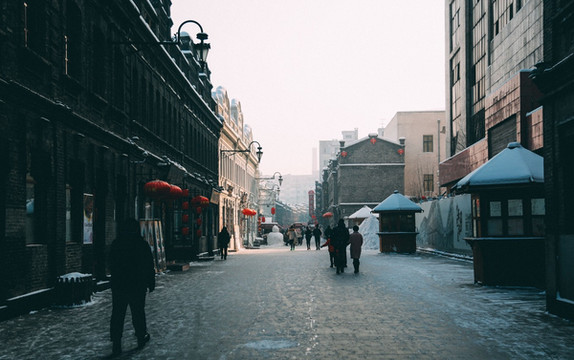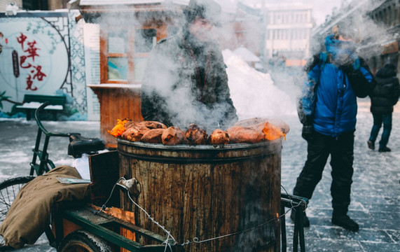冬季的中央大街,越晚越热闹,叫卖马迭尔冰淇淋的声音,空气中弥漫着的烤红肠香味,还有,不解冻能嗑掉牙的冰糖葫芦。