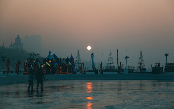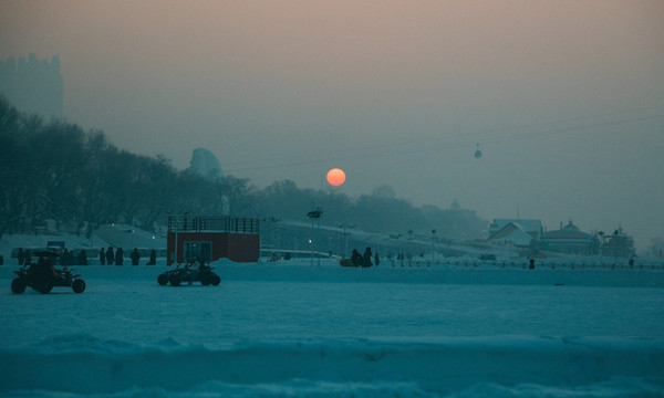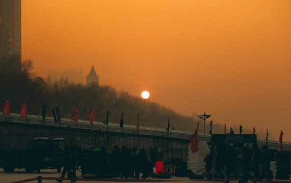 我们,和数千人一起,在松花江上静静的等待了一场日落。