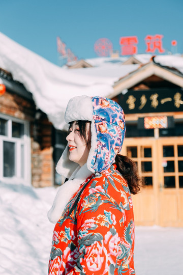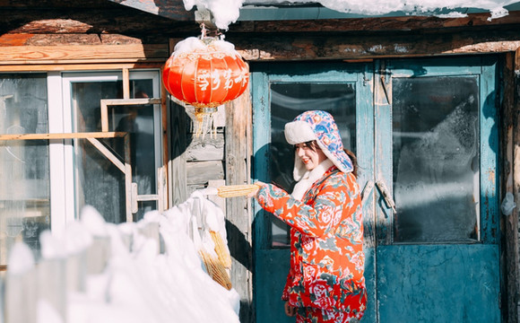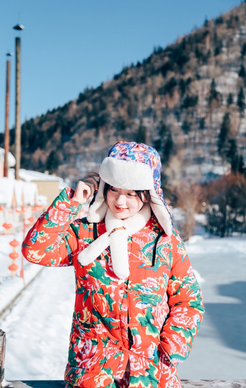 穿上民宿提供的大花棉袄, 东北 的冬天竟是一点也不冷了。