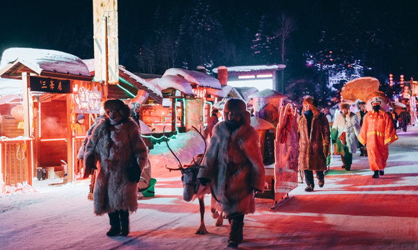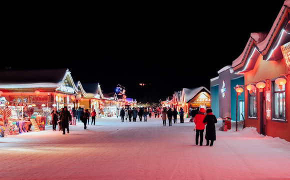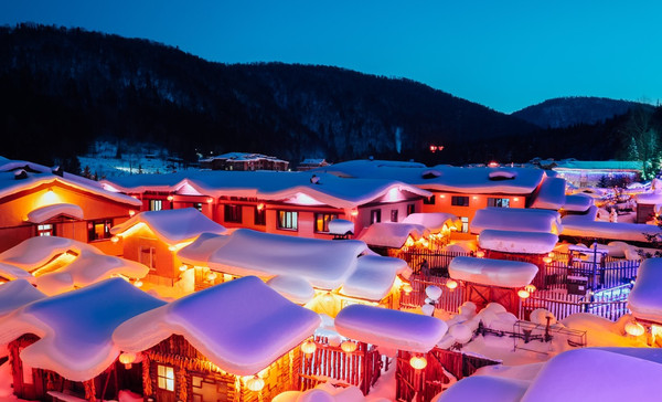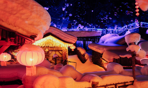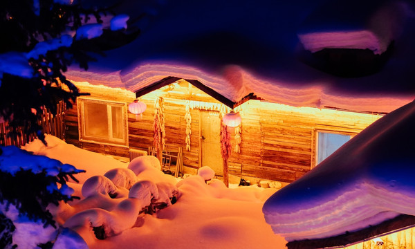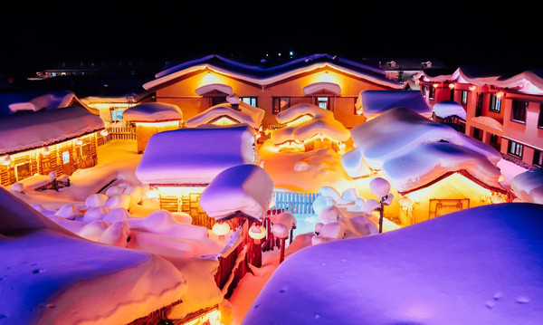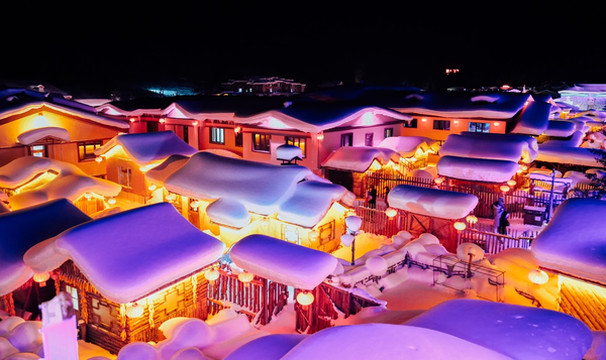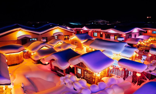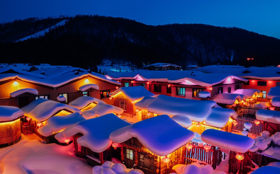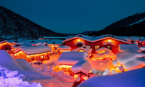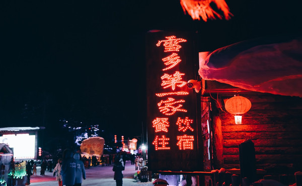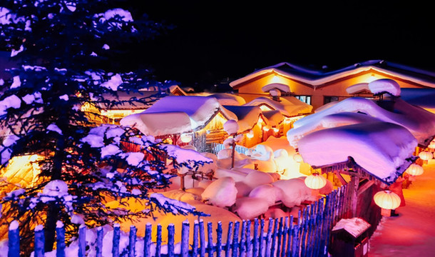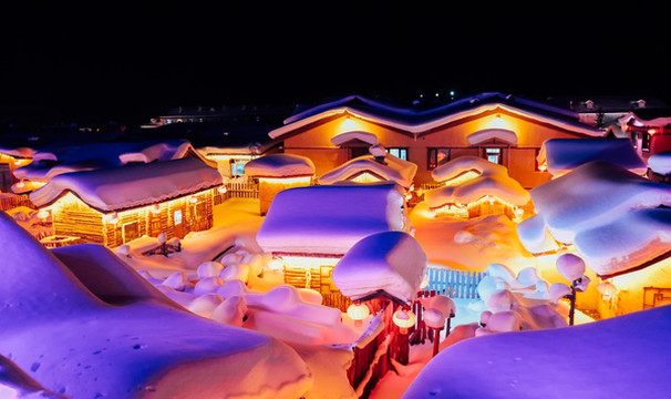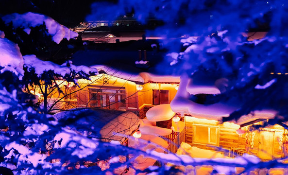 夜间亮灯后的 雪乡 ,更加梦幻令人难忘。