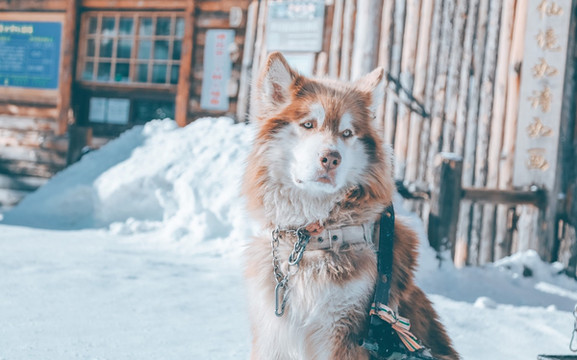 不愧是雪橇犬,在寒风中也依然保持着自己的姿态。