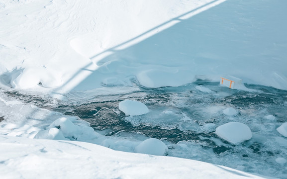 水流湍急,水温也不算太低,这里的河流竟还没有上冻,在这冰天雪地里,还能听得见溪水潺潺声。
