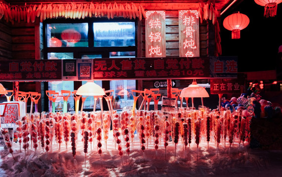 哈尔滨 老道外,大大的雪人和冰糖葫芦。