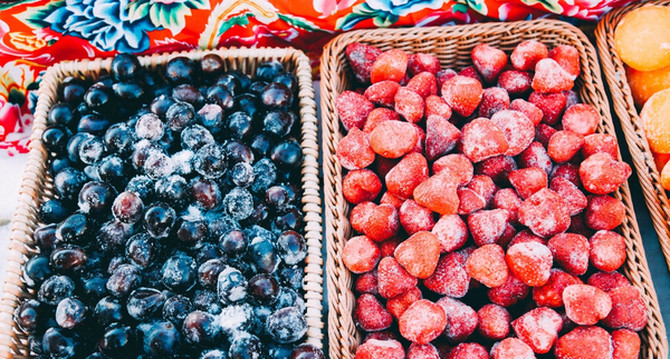 被扔在室外的冻草莓、冻葡萄,还有冻黄桃、冻梨、冻柿子...北方的冬天,室外就是一个天然的大冰箱,这个冰箱有着自己的脾气,造就了这些,我们难得一见的美味。