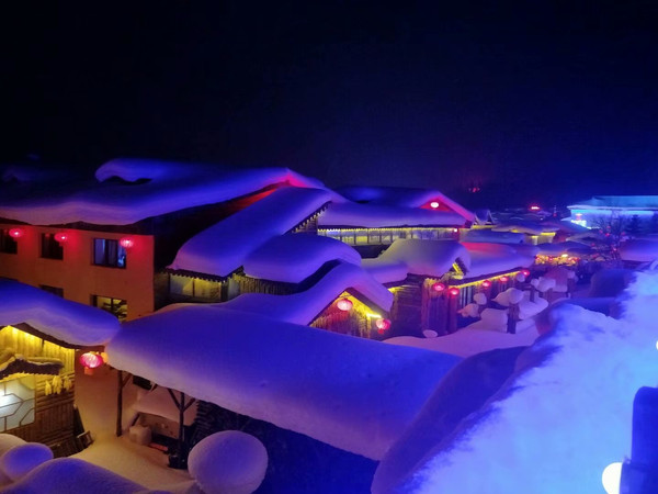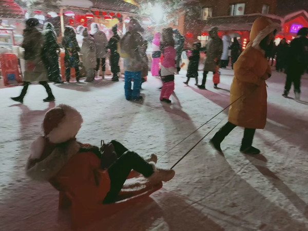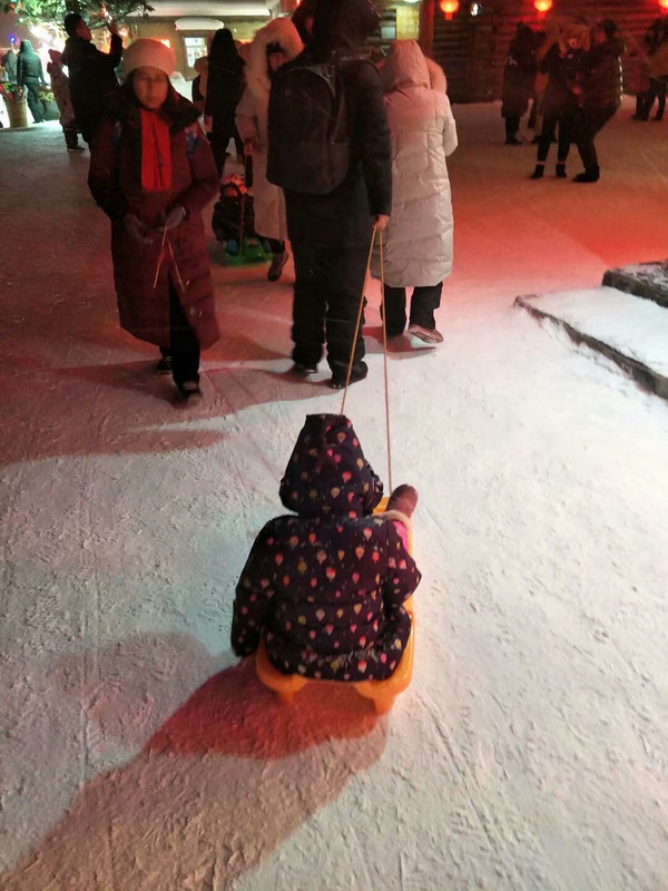短暂的沮丧之后,我们又找到了更开心的游乐方式,人拉雪橇!在漫天大雪中,在人头攒动的雪韵大街上,在冰天雪地里,我们仨就像完全回到了童年,卯足了劲儿在路上拉着雪橇疯跑,连周围的人都被我们开心的气氛感染,纷纷给我们让道,还有人自发的加入我们,帮忙一起拉着疯跑!不到半个小时,里里外外衣服全部汗湿,那种儿时疯玩的感觉也只有在雪地里才会被释放的淋漓尽致,真的是超级减压啊!疯过玩过笑过闹过以后,走上栈道,从上而下欣赏雪乡的景致,只见家家户户的前门后院里,只要有平面,都会被老天涂抹上一层厚厚的奶油,美到你都有一些不大相信它的真实。从栈道望下去,就像是进入了童话的世界里,无需任何滤镜修饰,随手一拍都是大片,真的无比羡慕这里的雪,人在高处雪在院里,不会被闲杂的人们干扰,哪怕你爱它或者恨它,你也只能这样的看着它,它只用呈现出最美好的样子。脑海里一直呈现着眼前的美好,回到温暖的炕上,渐渐的进入梦乡。
