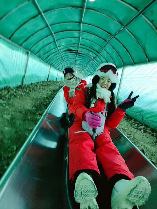 马拉雪犁晃完就可以坐上缆车登上世界第一大滑道的山顶一览雪原的绝佳风景了,这个项目一般旅行社是不安排的,所以好多到亚布力的游客只知道这里有滑雪场,领略不到山顶的风景,我们到的那天天气不算特别好,山下几乎都是白茫茫的一片,但坐缆车上去的时候看到的景致还是不错的,越接近山顶风景越美,上面的气温相对来说比较低一些,湛蓝湛蓝的天空下掩映着白色的树枝,雾凇景观虽然没有达到极致,但是也很美丽~~~到了山顶一人坐一个小滑车,从大滑道飞驰而下,滑行速度可以自己用刹车杆控制,操作非常简单,只要你胆子够大,人少的时候真的是完全可以满足你放飞自我的需求,保证你一路尖叫三分钟到达山脚。此项目推荐,体验感十足。