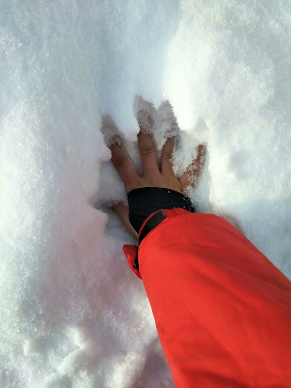 穿过威虎寨,跟土匪们对完暗号,就可以坐上雪地摩托车直奔大秃顶子山顶了。一坐上雪地摩托,我整个心脏就提到了嗓子眼,惊险刺激之感绝不亚于高速过山车,飞驰的摩托、呼啸的山风、漫天的狂雪、天地间一片纯白,山间回响着我的惊声尖叫声,一直响彻到山顶,我叫的声音越大,摩托骑手油门加的越大,颠跛的就越剧烈,坐在后排的我感觉自己分分钟就能被狂甩出去。真的太佩服他们的胆量了!飞驰到了山顶下了车,我的腿基本走不了路,完全开始打颤,加上山顶的风雪极大,绝对可以达到六、七级风力,没走两步,眼睛已经完全睁不开了,一不留神,就会被风推着走,一个踉跄,就会摔个仰翻天,最后实在摔的爬不起来了,干脆坐在地上喊起了妈,不知道我妈在家是否耳根子发痒了?心想你出去狂野的时候咋没想起你妈呢!