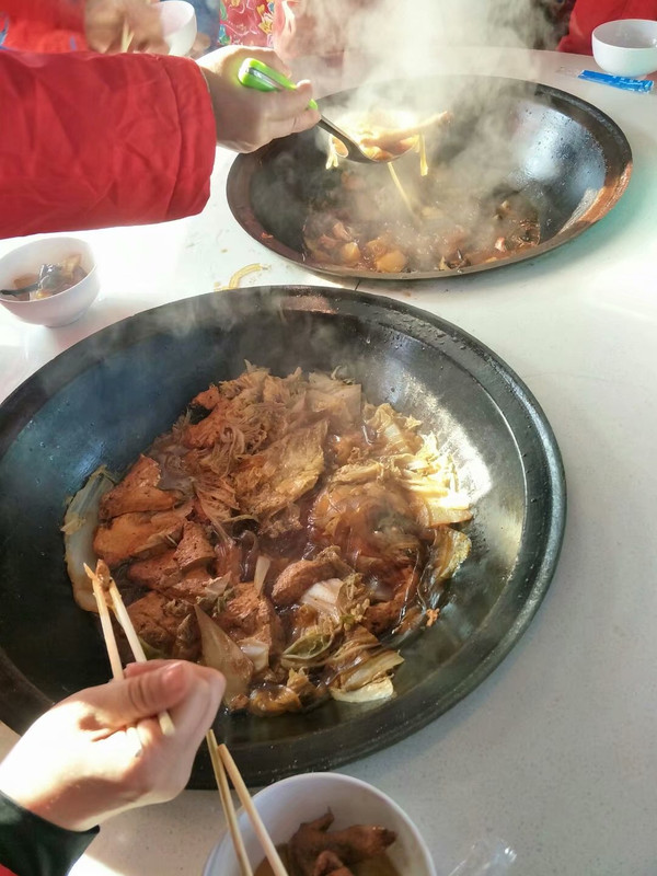 大滑道下来就由旅行社安排到了农家吃大锅饭团餐,在东北这种一锅乱炖、什么佐料也没有,既没味儿也没样儿的团餐也算是难吃至极,建议去东北跟团的小伙伴最好自备麻辣酱或者榨菜,不然吃惯了麻辣鲜香的人来了只能跟我一样每天食不知味,当做减肥了。等菜的过程中跟雪来个面对面接触,一进雪地里,中年小姐姐也会秒变魔怔玩雪狂人,根本顾不上冷了,玩了再说。疯玩完毕,因为下午还有重头戏,滑雪是非常耗费体力的,只能勉强吃点填饱肚子直奔滑雪场去。亚布力滑雪场应该是国内最专业最大的滑雪圣地了,每年都会组织数场专业滑雪比赛,遍布山体的各级滑雪道让人眼花缭乱,途中遇到专业运动员都是带着雪板坐缆车到山顶再一路滑下去,像我这种菜鸟只能默默在心底膜拜了。进了滑雪场,导游会指引大家排队领取滑雪装备,所有的装备器械都是团费里包含的,但请滑雪教练是自费,240元两小时,可以带你进入中级滑道体验快速滑雪的快感。没有教练的只能进入初级滑道,鉴于我在武当滑雪场摔的四脚朝天的教训,果断请上教练,两个小时下来,体力基本耗尽,完全累趴,事实证明,滑雪这项运动还是不适合我,天资太笨,始终保持不了平衡,还是雪地里躺躺,摆摆造型装装样子算啦!