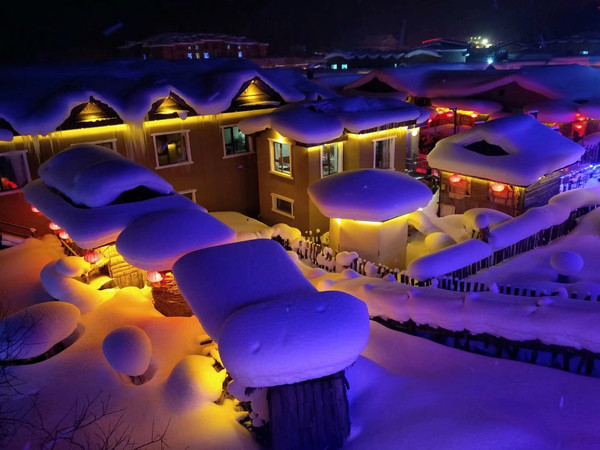 下午的大滑道和滑雪项目玩罢,体验完极速滑行的乐趣后,还有一些雪地游乐项目基本已经没有体力玩了,坐上大巴车一路昏睡到了旅行社安排的东北民宿,三人一间大炕房,虽空间不大,但也算干净整洁舒适,这边沿途的村庄居住和饮食环境有限,多以农家民宿为主,第一次住这样的通铺,感受着东北的滋味,凑巴凑巴也是不错的。安顿下来以后才发现,明明才下午四点多,天已经完全黑了,休息片刻,又吃了顿无法言语的团餐后,前往亚布力森林温泉体验冰火两重天的雪地温泉,温泉分为室内区和室外区,我们果断直奔室外,白雪皑皑+热气腾腾的感觉简直难以言表,汤池边厚厚的一层冰,皮肤挨上去那叫一个冰爽!泡在水里,白天的疲累顿时缓解了许多,室外体验完进到室内,来根马迭尔冰棍也是极爽的,可要命的是第一口就把舌头和嘴唇粘住了,经过小伙伴们手忙脚乱加上不停哈气,才避免了血淋淋的撕掉皮!所以大家一定要记住,去东北,千!万!不!要!马上去吃冰冻的东西,一定要放室内暖暖再吃,不然分分钟把嘴巴粘住!!!绝对比502还坚固!温泉泡罢,第一天充实而又愉悦的行程就结束啦!回去美美的睡一觉,明天继续!