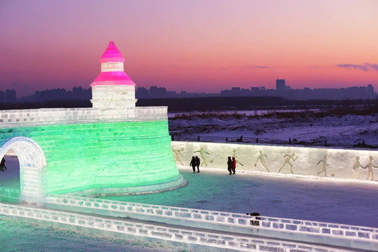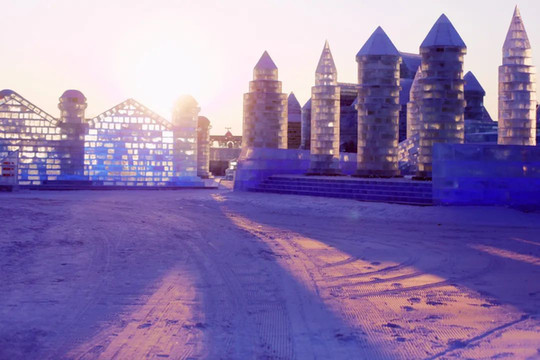 建议你在日落之前便到达这里,傍晚时分的冰雕,晶莹剔透,与晚上完全不同的感觉。