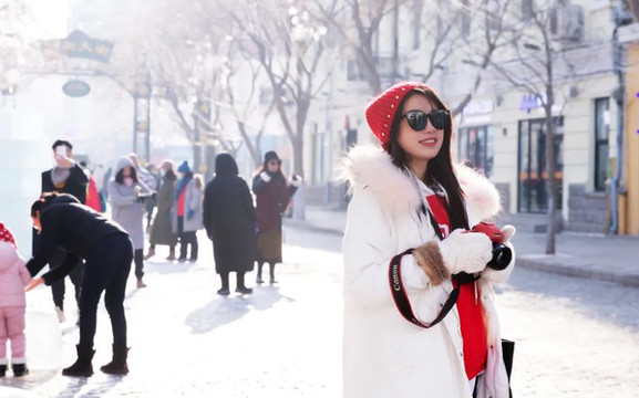 只有一公里多的中央大街,夜晚热闹非凡。迎面而来,清一色的帽子围巾手套口罩。