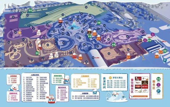 冰上漂移、雪地摩托、冰滑梯、滑雪圈、雪爬犁、滑冰、冰上拔河、雪地排球、雪地橄榄球、冰壶、发光秋千、跷跷板......这里有五十余项娱乐项目。