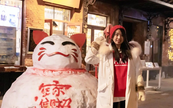 几乎每个商家的门前,都堆了个雪人,有的霸气、有的可爱,惹得游客们纷纷拍照留念。