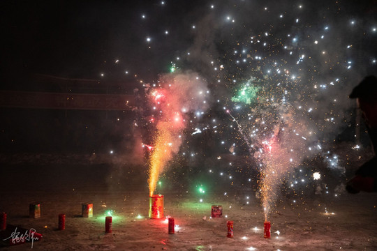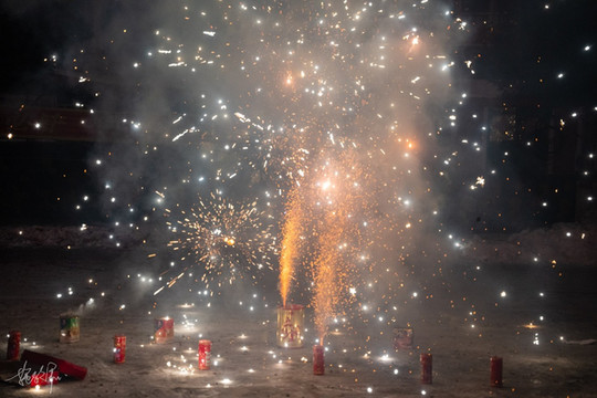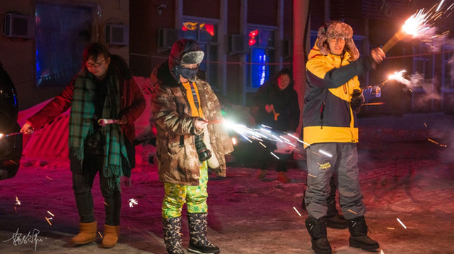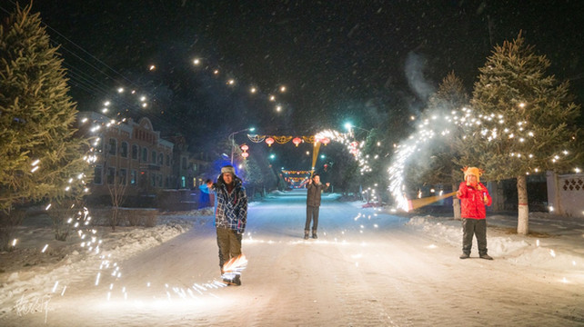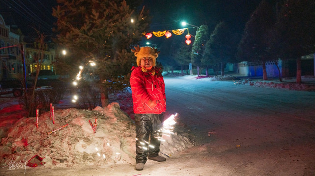 入夜以后,在客栈里饱食一餐,今儿个在路上金哥买了点烟花说是来了凤凰山热闹热闹。一会儿玩着光绘,一会儿是仙女棒,零下二十几度的室外放烟花,那酸爽。