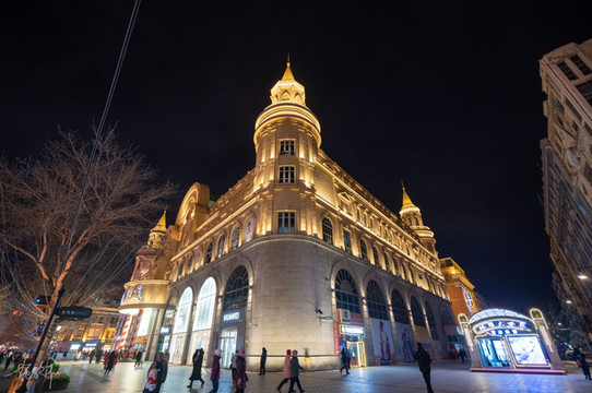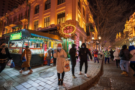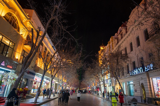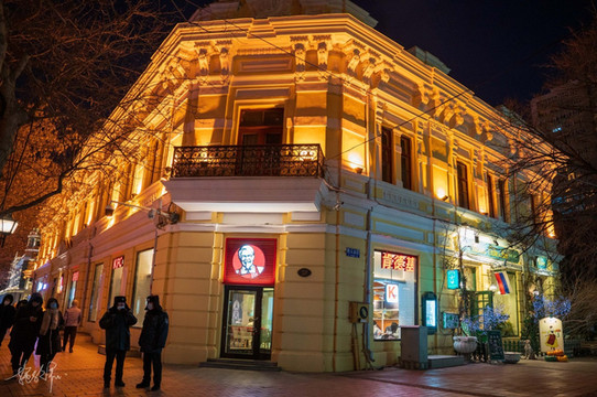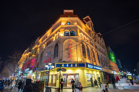 东北 日落得早,下午三点半就天黑了,我们来到中央大街也已经是夜幕下了,冷当然是真的冷,可这建筑值得我为它站在室外。中央大街的路面是一块又一块的小方块,光滑柔润,一看就很有历史感。