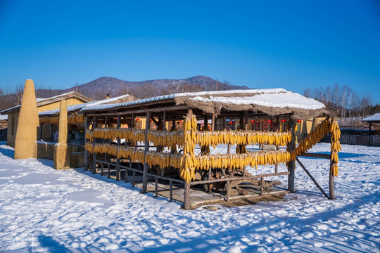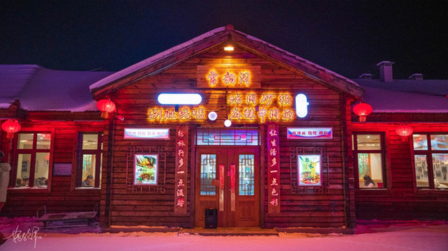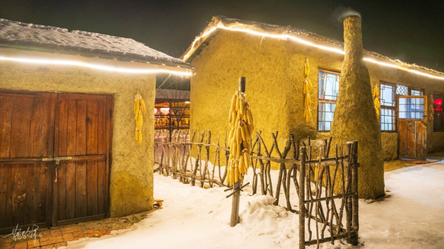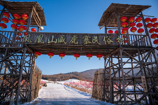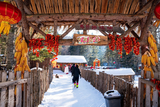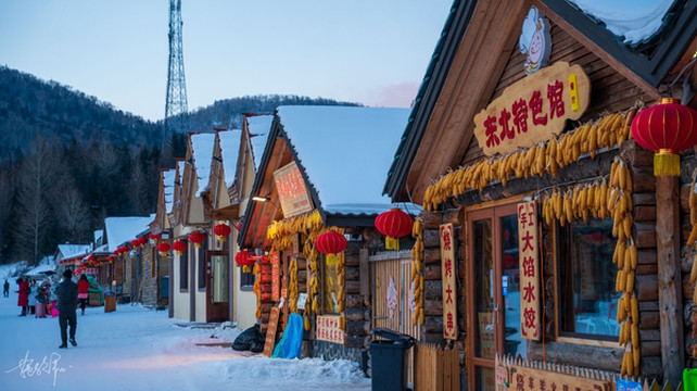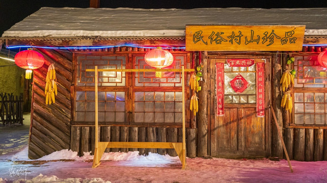 民俗村是很有 东北 范儿的一个小村子,节目拍摄完以后留下来的一个景点,在村子里我们会遇到傻狍子、麋鹿等,有烤肉串的,也有卖冰糖葫芦,煮玉米的,可以在这打打牙祭,去屋子里面暖和暖和。
