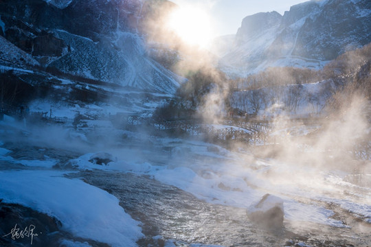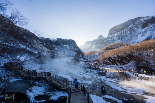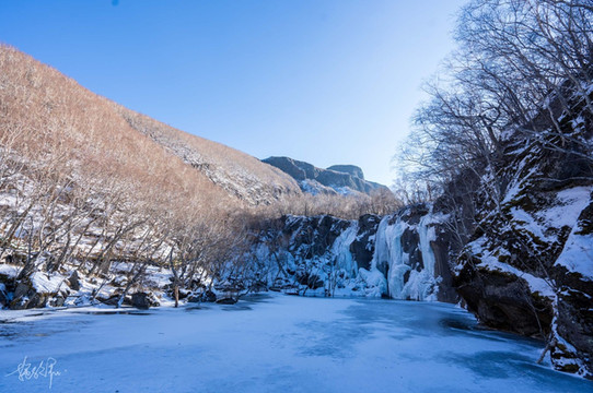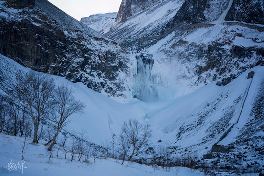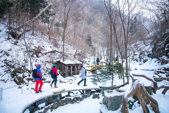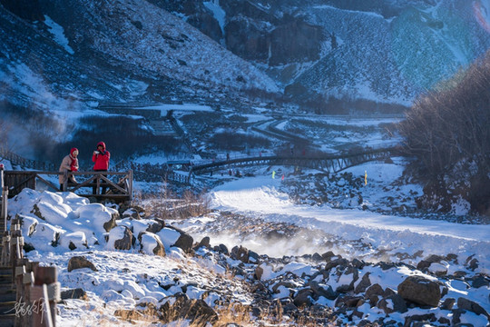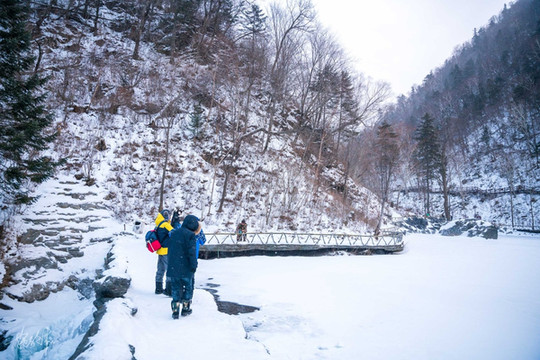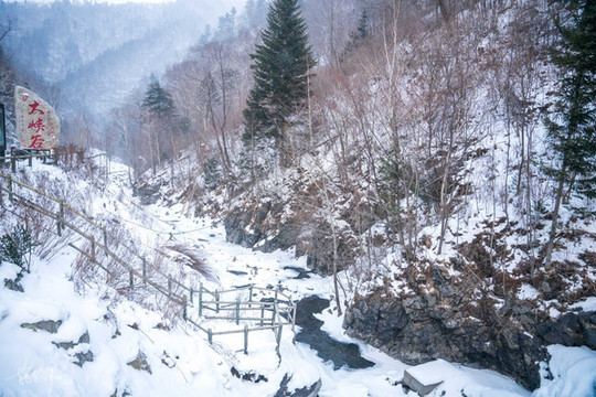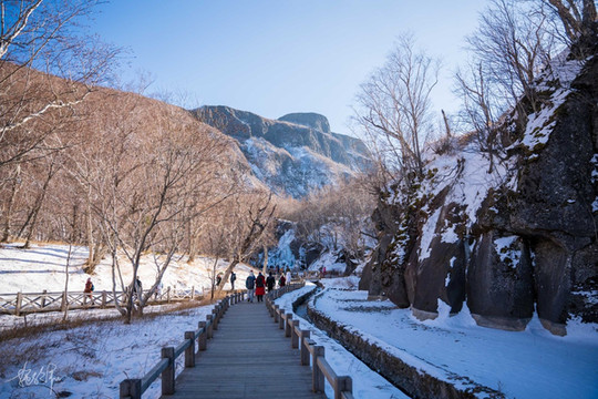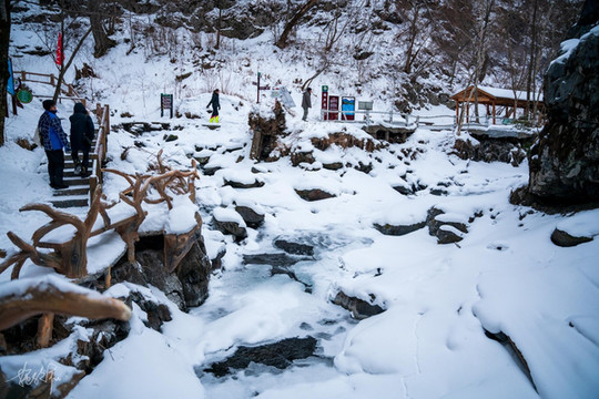 峡谷长有五公里,时间的缘故我们没有全都走完,但也可以不走回头路,先上山再下山,可以感受一下峡谷的落差,大峡谷里的不冻河虽然是这等气温也依然潺潺流水。整个景区的管理还算很不错的,我们是最后一批进入景区的了,天快黑的时候,工作人员还会陪同一块走出景区,一边喊着小心一边带着路。