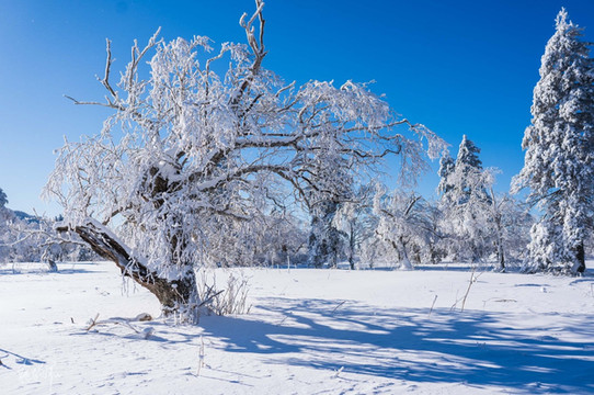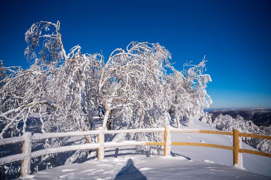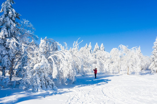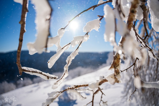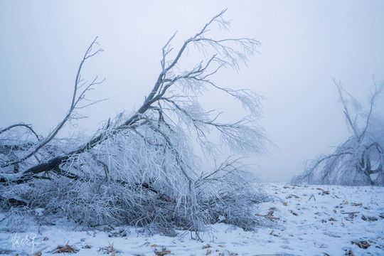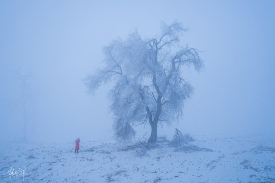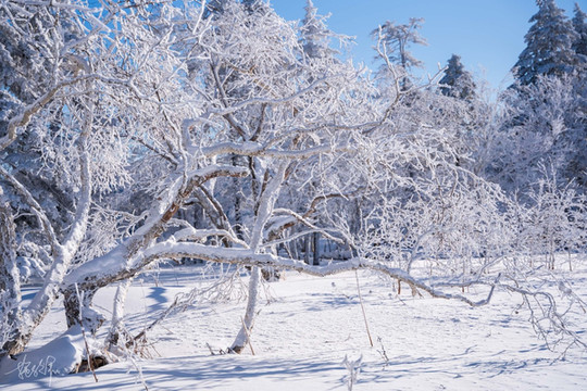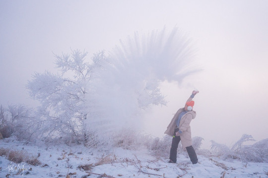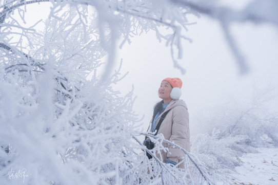 来到凤凰顶,进入了一个恍若梦里的秘境,除了我们,没有别人,一个安静的世界。是有多大的幸运才能遇到漫天的雪松,整座山上银装素裹、 玉树 琼花,那一下竟无言去形容它的美,只想滚到雪地里去撒欢儿。
