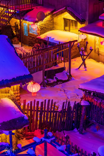 我的图片所拍摄的地方是在 雪乡 的观光栈道上,就在雪韵大街的后面,一条路上都会有指示牌,这个是含在门票里面的。木栈道比 雪乡 的房子大概高了十几二十米左右,在这里可以看到 雪乡 村庄的美景。