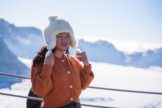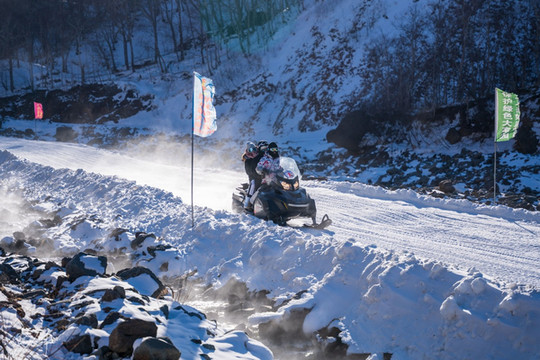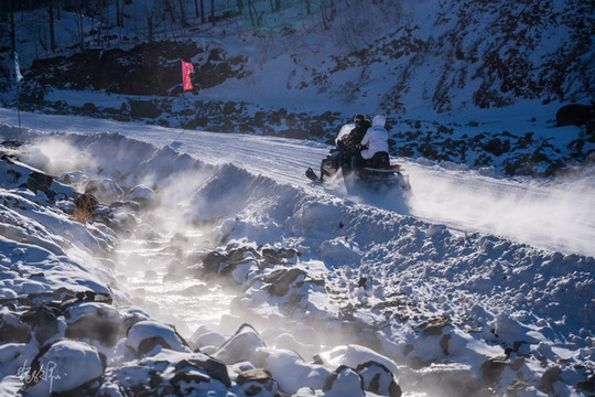 这雪地摩托坐起来真是太刺激了,紧紧抓住了摩托车两边的把手,享受着摩托小哥的速度与激情,驰骋在山间小路上,我们很快就来到了山顶。坐摩托车的时候一定记得把摄影设备和手机都放好了,有拉链的一定要拉上拉链。