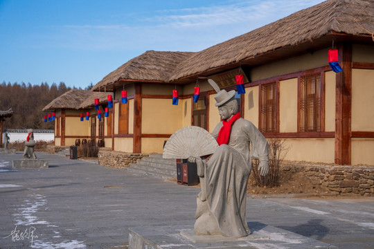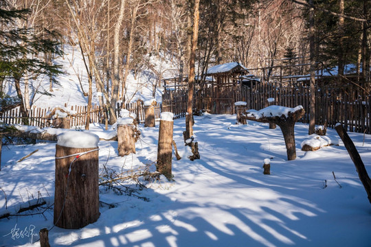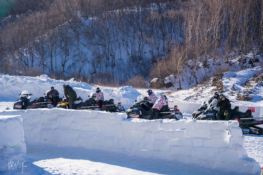 在山顶一阵游玩之后,我们继续乘坐雪地摩托来到了凤凰山影视城,后来下山时还体验了一番马拉爬犁,有点好玩。