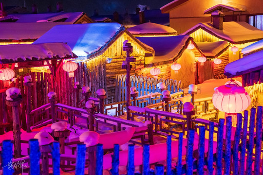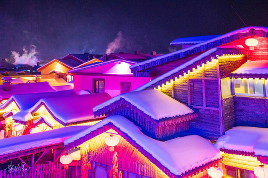可惜的是这些年来,有许多人都在喷 雪乡 ,搞得我也都是一点都不敢去 雪乡 。但也因为害怕,我已经失去了见证最原始 雪乡 全是木刻楞木屋的时候了。这次与 雪乡 相遇,虽说还是被人多吓坏了脚步,再加上来得比较早雪是真的少,略有失望,但算是亲眼见到梦中的 雪乡 了。小妖跟我说今晚都还不到一万人,这要是两万人的时候 雪乡 大街就跟挤地铁一样。