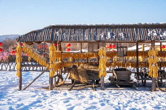 第二天我们即将离开凤凰山的时候,还是忍不住又来了一趟民俗村里,尝尝冰天雪地里的冻梨冻柿子,再来一杯现磨豆浆,看着他们在雪地里玩雪,雪圈、铁轨手压车等等。