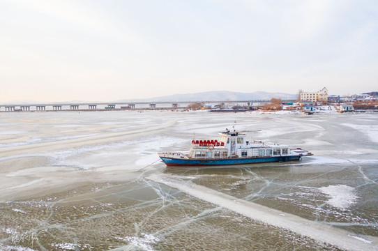 我们的拍摄点是在镜泊 湖南 湖,就在公路边上不远处,看到镜泊湖的第一眼真的由衷感叹“北国风光,千里冰封”说的便是这样的场景吧。