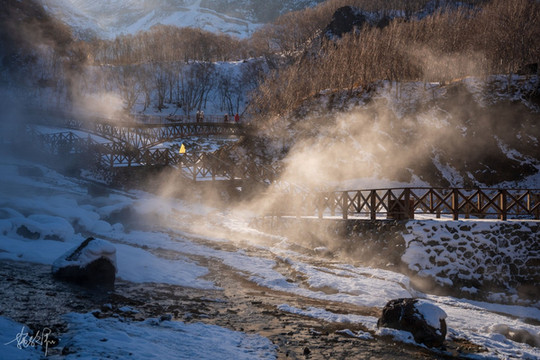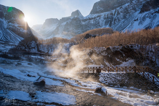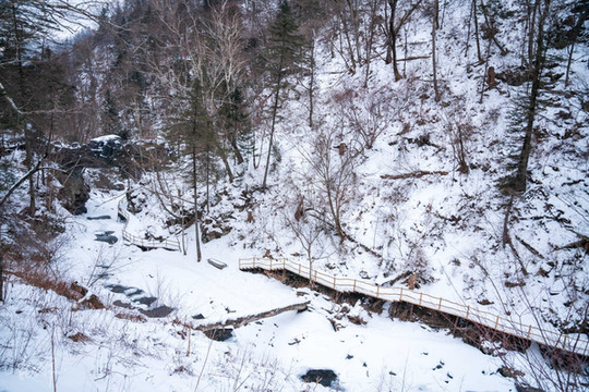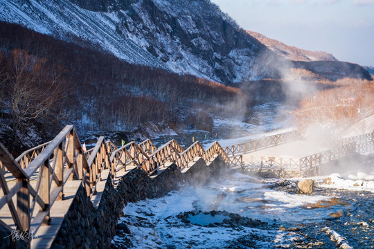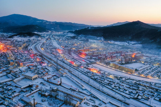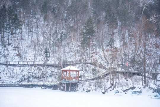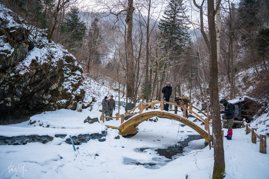 在 东北 的第一天才知道,下午三点半天就开始黑来了,好长的黑夜啊。天空中开始飘着小雪,但眼看着天就要黑了,所以我们就准备小小徒步一个凤凰山大峡谷。