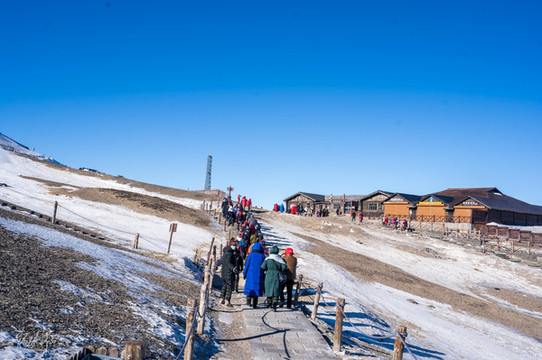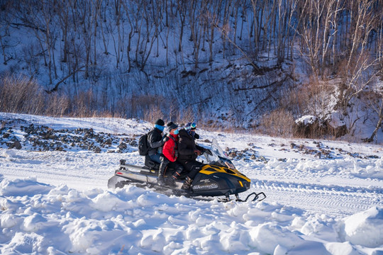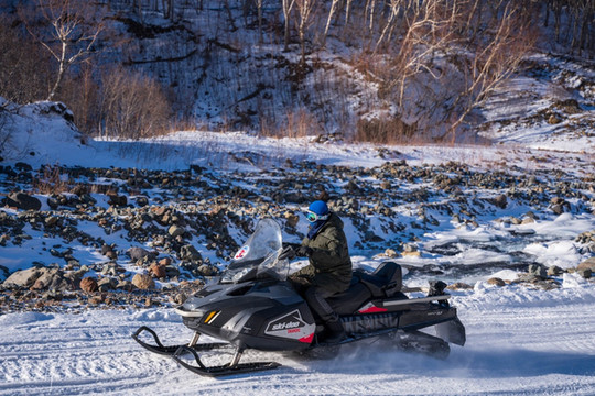 凤凰山的主峰海拔有1690米,是 黑龙江 的最高峰,我们今儿个准备上山顶的空中花园,乘坐着景区区间车来到了山腰上的游客中心,我们没有选择走路穿越上山顶,而是坐超酷炫的雪地摩托去happy。