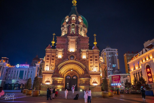 没有办法,是在晚间来的教堂,第二天一早的就要飞了,没有机会进入教堂参观一番。但就在外面看已经足够了,在这里仿佛置身在异国他乡,跟以往在大陆见过的教堂都不太一样,真的太壮观啦!依依不舍离开了大教堂打车回到了温暖的酒店,一觉醒来机场见, 东北 拜拜啦!