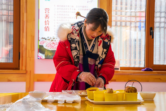回到山脚下时,我们来到了凤凰山的民俗村,整个村落还原了五六十年代的 东北 林区生产生活文化。写文的时候想起了村子里豆腐坊的豆浆,刚刚用石磨磨好的豆汁加上一点白糖,那味道,好喝。