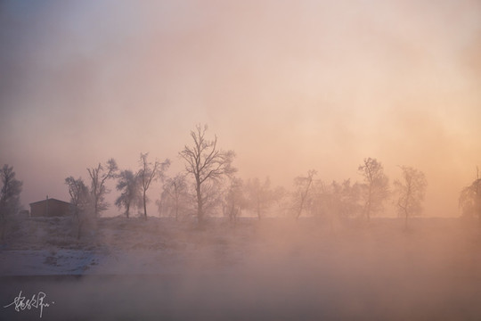 第二天醒来,屋外一片冰清玉洁的世界,满满都是雪屋檐,天才蒙蒙亮,好多人开始想要感受泼水成冰。在日出有朝霞的无人机视觉下, 雪乡 美得很。念念不舍的我们将车开过 雪乡 ,前往下个目的地。