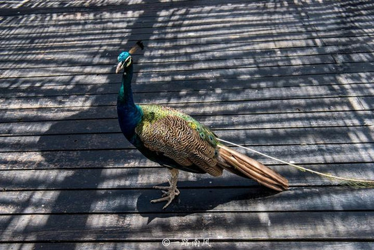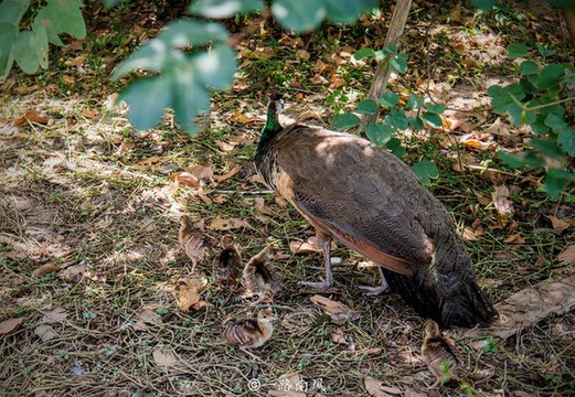 生态园生活着各种孔雀,它们同样不怕生人。在水边的陆地上,我们还看到孔雀妈妈带领一群小孔雀在纳凉。孔雀主要居住在热带和亚热带,喜欢疏林草地,尤其是水边的开阔地带。