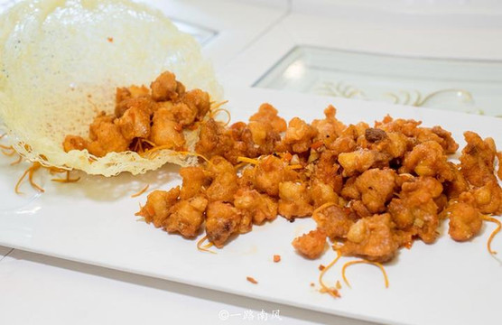 王眉头:野生鱼类,纤维结构紧致,经过80度的低油温浸炸之后,外表酥脆,内部柔软。