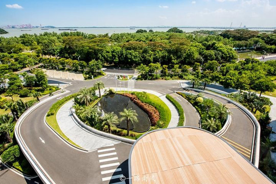 湿地公园旁边有个观景楼,登楼可赏公园全景,以及旁边珠江口的浩瀚海景。
