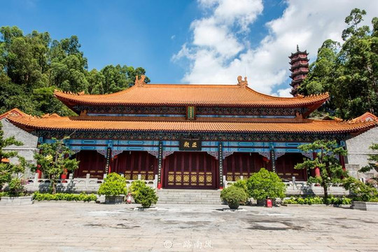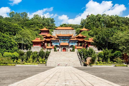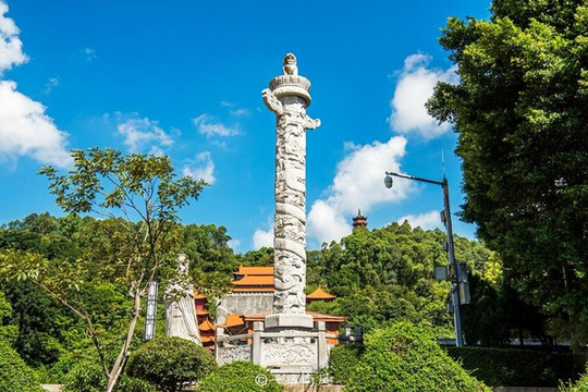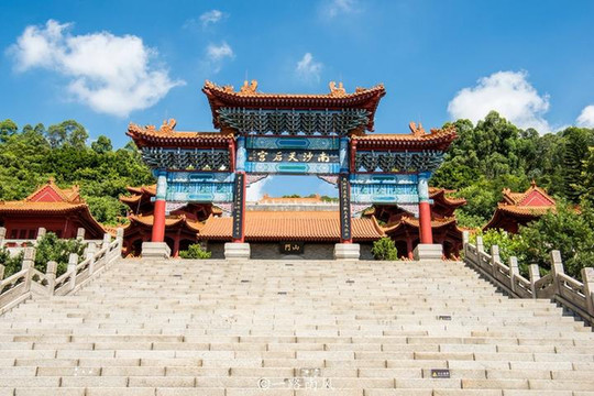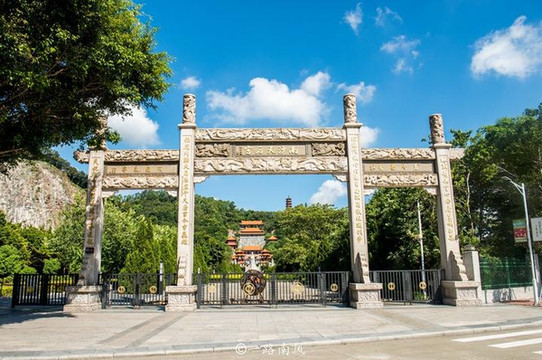 南沙天后宫是南沙区的标志性景区,是广东到东南亚地区最大的妈祖庙,建筑群坐落于大角山南麓,前面就是辽阔的珠江出海口伶仃洋。南沙天后宫依山而建,气势恢宏,融合了北京故宫和南京中山陵的建筑风格和气势,独特的建筑美学让人赞叹不已。走近南沙天后宫,最先看到的是一座典雅的牌坊,上有“南沙天后宫”浮雕字,牌坊的四根立柱上有四句对联,横梁等处还有龙形浮雕。