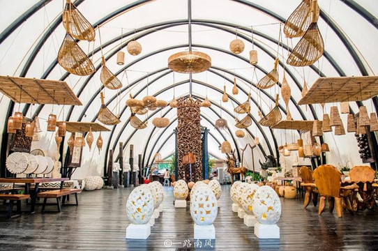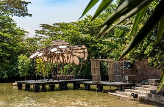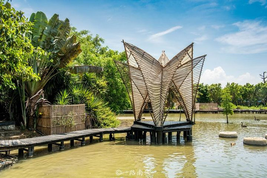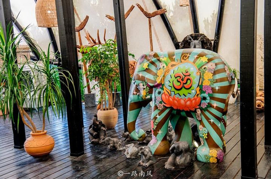 南沙水鸟世界生态园以保护、研究为主,旅游开发为辅,园内随处可见各种创意作品。进入景区,来到第一个大厅,首先看到的是一头彩色大象带着一群迷你小象,富有南亚和东南亚热带风情。