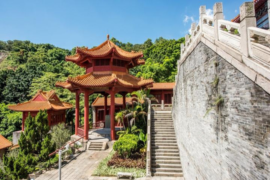 南沙天后宫掩映于绿林中,身在山中,呼吸着充满负离子的新鲜空气,迎面清风徐来,不觉心旷神怡。